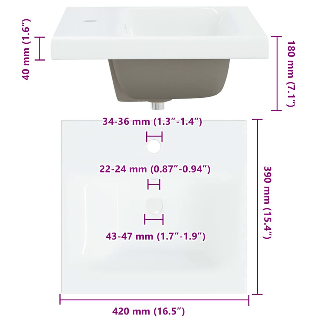 - 1 x Waschbecken: 42 x 39 x 18 cm (LxBxH)