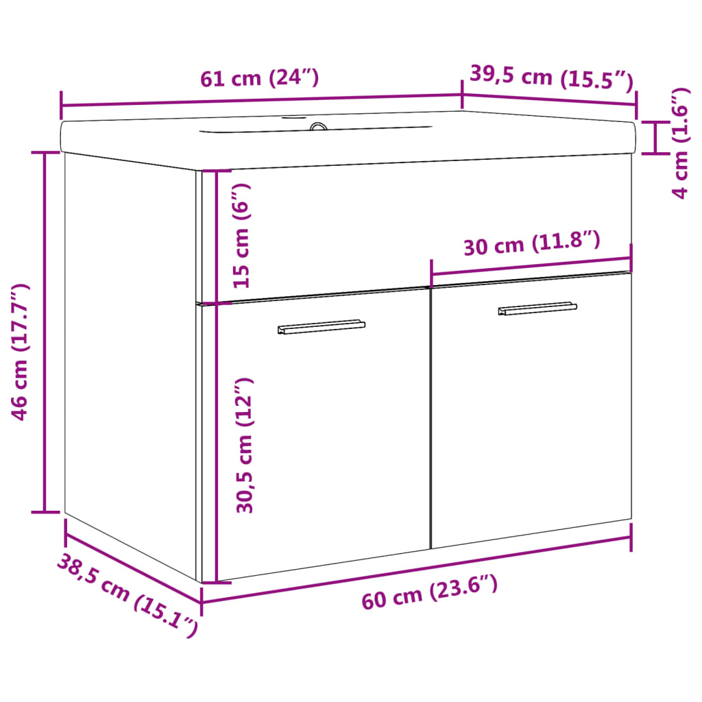 Dieser stilvolle Badezimmerschrank mit Einbaubecken bietet viel Stauraum und ist eine ausgezeichnete Ergänzung zu deinem Badezimmer, da er für Ordnung sorgt und eine markante Optik aufweist!Langlebiges Material: Holzwerkstoff ist ein Material außergewöhnlicher Qualität mit glatter Oberfläche. Er zeichnet sich durch Festigkeit, Stabilität und Feuchtigkeitsbeständigkeit aus.Reichlich Stauraum: Der Waschbeckenschrank bietet reichlich Platz, um wichtigste Toilettenartikel und Badutensilien wie Seife, Shampoo, Zahnpasta usw. zu verstauen.Platzsparendes Design: Die Oberplatte des Badschranks bietet den idealen Platz für das Waschbecken. So kannst du auch den freien Platz unter dem Waschbecken optimal ausnutzen.Wandmontage: Der Badezimmerschrank lässt sich an der Wand montieren, um zusätzlichen Stauraum zu schaffen. Auf diese Weise kannst du deine Stellfläche maximieren und leichter für Ordnung sorgen.Pflegeleicht: Dank seiner glatten Oberfläche lässt sich der Badschrank mit einem feuchten Tuch leicht reinigen und erfordert wenig Pflege.Gut zu wissen:Schrauben und Dübel für die Montage an der Wand sind nicht enthalten. Passendes Montagezubehör muss separat gekauft werden. Wenn du dir bezüglich der Montage nicht sicher bist, wende dich bitte an einen Fachmann. Bitte lies und befolge jeden Schritt in der Anleitung.