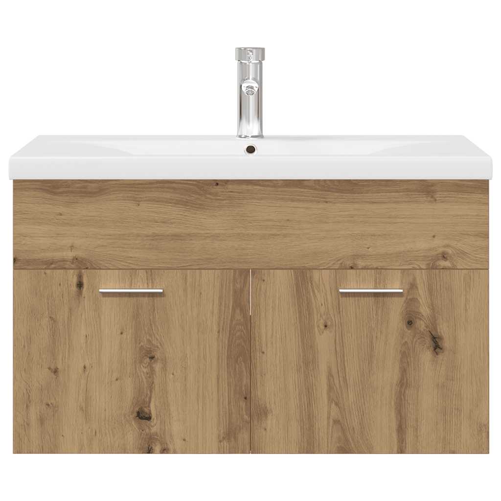 Dieser stilvolle Badezimmerschrank mit Einbaubecken und Wasserhahn bietet viel Stauraum und ist eine ausgezeichnete Ergänzung zu deinem Badezimmer, da er für Ordnung sorgt und eine markante Optik aufweist! Robustes Material: Der Unterschrank besteht aus Holzwerkstoff, einem Material von außergewöhnlicher Qualität mit glatter Oberfläche, das sich durch Festigkeit, Stabilität und Feuchtigkeitsbeständigkeit auszeichnet.Viel Stauraum: Der Waschbeckenunterschrank verfügt über eine Schublade und bietet dadurch viel Stauraum für die Aufbewahrung verschiedener Sachen in deinem Badezimmer.Praktisches Design: Auf der Oberseite dieses Badschranks findet dein Waschbecken den idealen Platz.Wandmontage: Der Badezimmerschrank lässt sich an der Wand montieren, um zusätzlichen Stauraum zu schaffen. Auf diese Weise kannst du deine Stellfläche maximieren und leichter für Ordnung sorgen.Überlauffunktion: Ein Überlauf sorgt dafür, dass das Wasser abfließt, wenn das Waschbecken zu voll wird. Gut zu wissen:Schrauben und Dübel für die Wandbefestigung sind nicht enthalten. Suchen und verwenden Sie die für Ihre Wände geeigneten Schrauben und Dübel. Wenn Sie unsicher sind, suchen Sie professionelle Hilfe. Lesen und befolgen Sie jeden Schritt der Anleitung sorgfältig.Wasserhahn und Ablauf mit Überlauffunktion sind im Lieferumfang enthalten.Es handelt sich um eine Warm- und Kaltwasser-Armatur. Für Warmwasser ist der Anschluss eines Warmwasserbereiters erforderlich.
