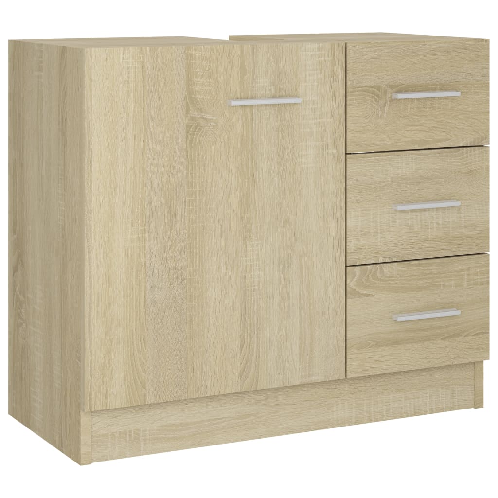Mit diesem Waschbeckenunterschrank kannst du zusätzlichen Platz in deinem Badezimmer schaffen. Die klaren Linien und das schlanke Design fügen sich perfekt in jedes Badezimmer ein. Dieser Schrank besteht aus Holzwerkstoff und ist daher robust und stabil. Der Waschbeckenunterschrank verfügt über 1 Fach und 3 Schubladen und bietet so verschiedene Aufbewahrungsmöglichkeiten sowie zusätzlichen Platz für eine Vielzahl von Gegenständen in dienem Badezimmer. Die Oberseite des Schranks ist ideal zum Einbauen des Waschbeckens. Zusätzlich ist der Schrank einfach mit einem feuchten Tuch zu reinigen. Bitte beachte: das Waschbecken ist nicht im Lieferumfang enthalten.