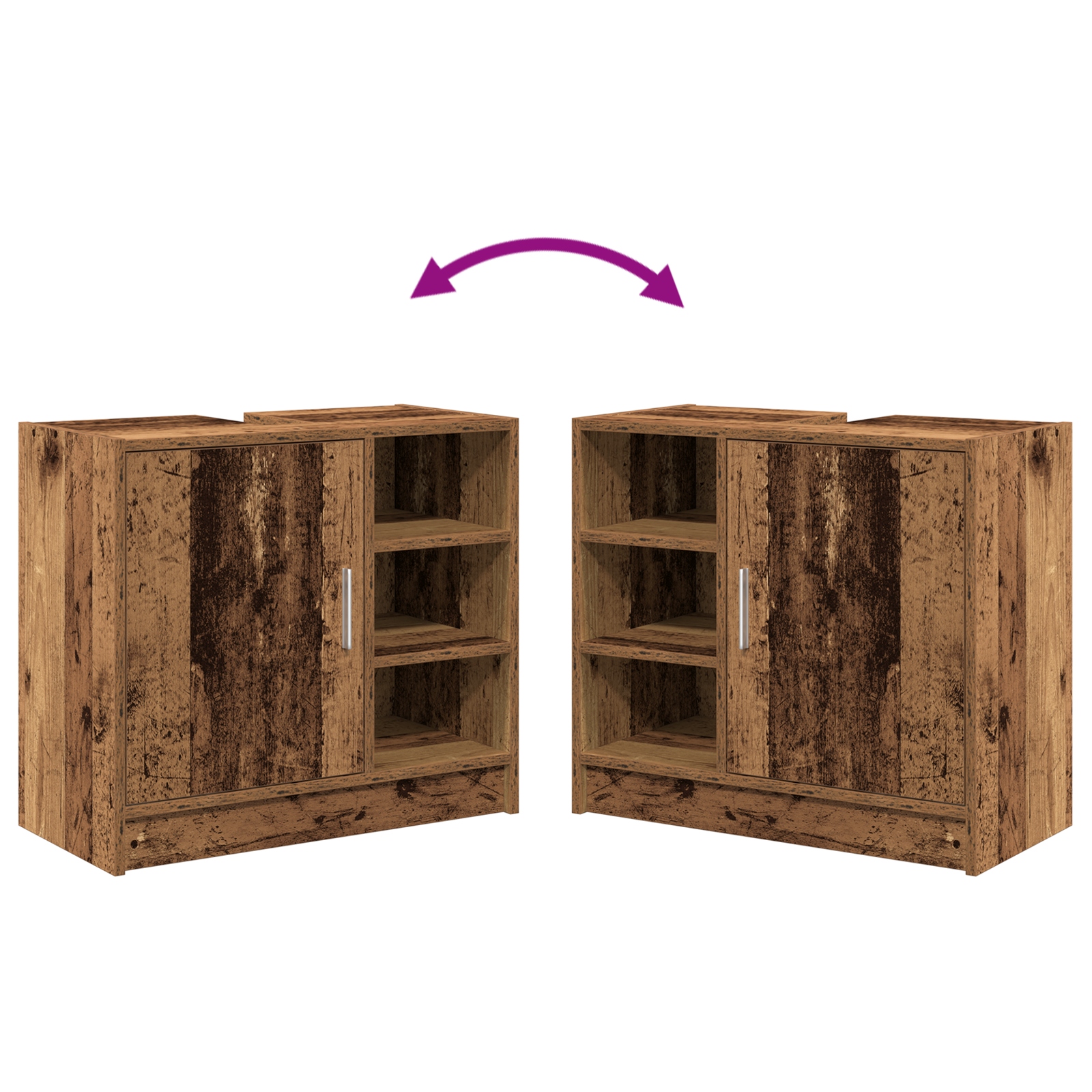 Dieser Waschtisch-Schrank ist eine schöne Ergänzung für dein Badezimmer und verbindet rustikalen Charme mit cleverem Design für tollen Stauraum. Hergestellt aus massivem Altholz, verleiht er dem Raum eine verwitterte Optik, die Tiefe und Charakter mit Stil kombiniert. Rustikales Design: Der verwitterte Look des Schranks verleiht ihm einen tollen Vintage-Charme, der ihn zum Blickfang in deinem Badezimmer macht. Passt gut zu verschiedenen Einrichtungsstilen und bringt Wärme in den Raum. Viel Stauraum: Mit drei Regalen und einer Tür mit Scharnieren bietet dieser Schrank viel Platz für deine Badezimmerartikel, damit alles ordentlich und übersichtlich bleibt. Das durchdachte Design sorgt dafür, dass du alles leicht erreichen kannst, wenn du es brauchst. Robuste Bauweise: Der Schrank aus massivem Altholz ist strapazierfähig und perfekt für den täglichen Einsatz im Badezimmer. Er hält langen Gebrauch stand. Einfache Pflege: Die Reinigung ist ein Kinderspiel; einfach kurz mit einem trockenen Tuch abwischen, um ihn frisch und sauber zu halten. Das spart dir Zeit, damit du dein ordentliches Badezimmer entspannt genießen kannst. Vielseitige Verwendung: Ideal für Badezimmer, aber auch in Waschküchen oder Utility-Räumen einsetzbar, zeigt er seine Multifunktionalität. Sein stylischer Look macht ihn für viele verschiedene Orte geeignet.