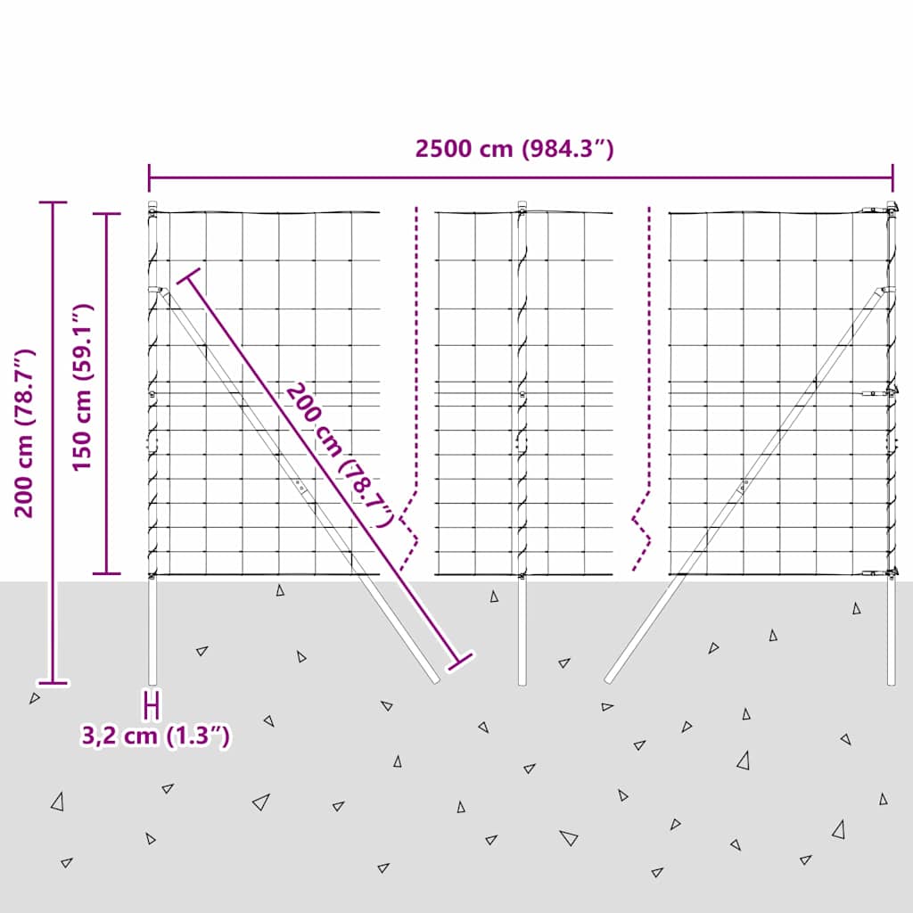 Dieser Feldzaun vereint robuste Stahlkonstruktion mit vielseitiger Nutzung und ist die ideale Lösung für Außenbarrieren. Mit seinem glänzenden silbernen Finish und dem widerstandsfähigen Design hält er deinen Bereich sicher und sieht dabei top aus. Super für Gärten, Höfe und mehr. Robuste Konstruktion: Das Design aus verzinktem Stahl macht ihn langlebig und UV-beständig, da musst du dir bei jedem Wetter keine Sorgen machen. Einfache Installation: Kommt mit allem, was du brauchst, einschließlich der Zaunpaneele und Pfosten. Zwei Personen können ihn ganz schnell aufbauen. Vielseitige Nutzung: Ideal für Gartenbarrieren und für alle Arten von Außenbedarf, erfüllt er problemlos verschiedene Anforderungen. Robustes Design: Die stabilen Pfosten sorgen auch bei schlechtem Wetter für Halt und machen ihn über die Zeit zuverlässig. Stylische Optik: Mit seiner polierten, glatten Oberfläche bringt dieser Zaun frischen Wind in deine Außenbereiche, während er gleichzeitig seinen Job macht.
