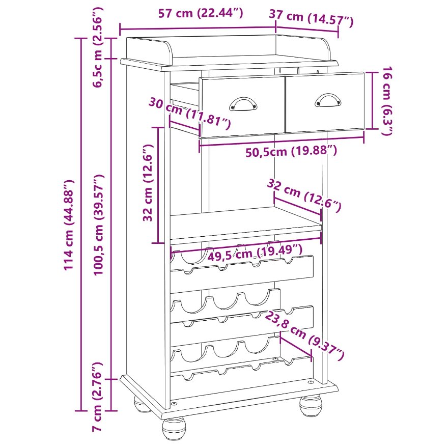 Dieses Weinregal begeistert mit seinem weißen und Holzdesign. Es verbindet Stil und Funktion, ideal für deine Hausbar oder Essecke. Mit seinem glatten Finish und modernen Charme wird es zum Blickfang in deinem Zuhause und sorgt gleichzeitig für eine praktische Aufbewahrung deines Weins. Dieses Weinregal bietet eine stilvolle Mischung aus Materialien mit einer lackierten weißen Struktur und warmen Holzakzenten, die jeden Raum aufhellen. Ideal, um deine Lieblingsflaschen zu präsentieren und alles organisiert zu halten. Es wurde so gestaltet, dass es viele Weinflaschen auf seinen Regalen aufnimmt, ordentlich verstaut und immer leicht zugänglich ist. Die kompakte rechteckige Form passt hervorragend in kleinere Räume, was es zur perfekten Wahl macht, wenn der Platz begrenzt ist, du aber nicht auf Stil verzichten willst. Mit seinem modernen Look ist dieses Regal für Weinliebhaber gemacht und verleiht deiner Hausbar, sei es in der Küche oder im Esszimmer, Eleganz, besonders wenn du Gäste hast. Hergestellt aus robustem MDF, ist es stabil und leicht, sodass du es einfach umstellen kannst, wenn du eine neue Einrichtung möchtest.