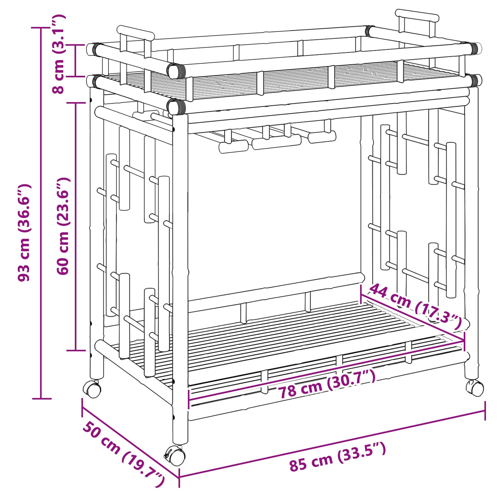 - Gesamtabmessungen: 85 x 50 x 93 cm (L x B x H)
