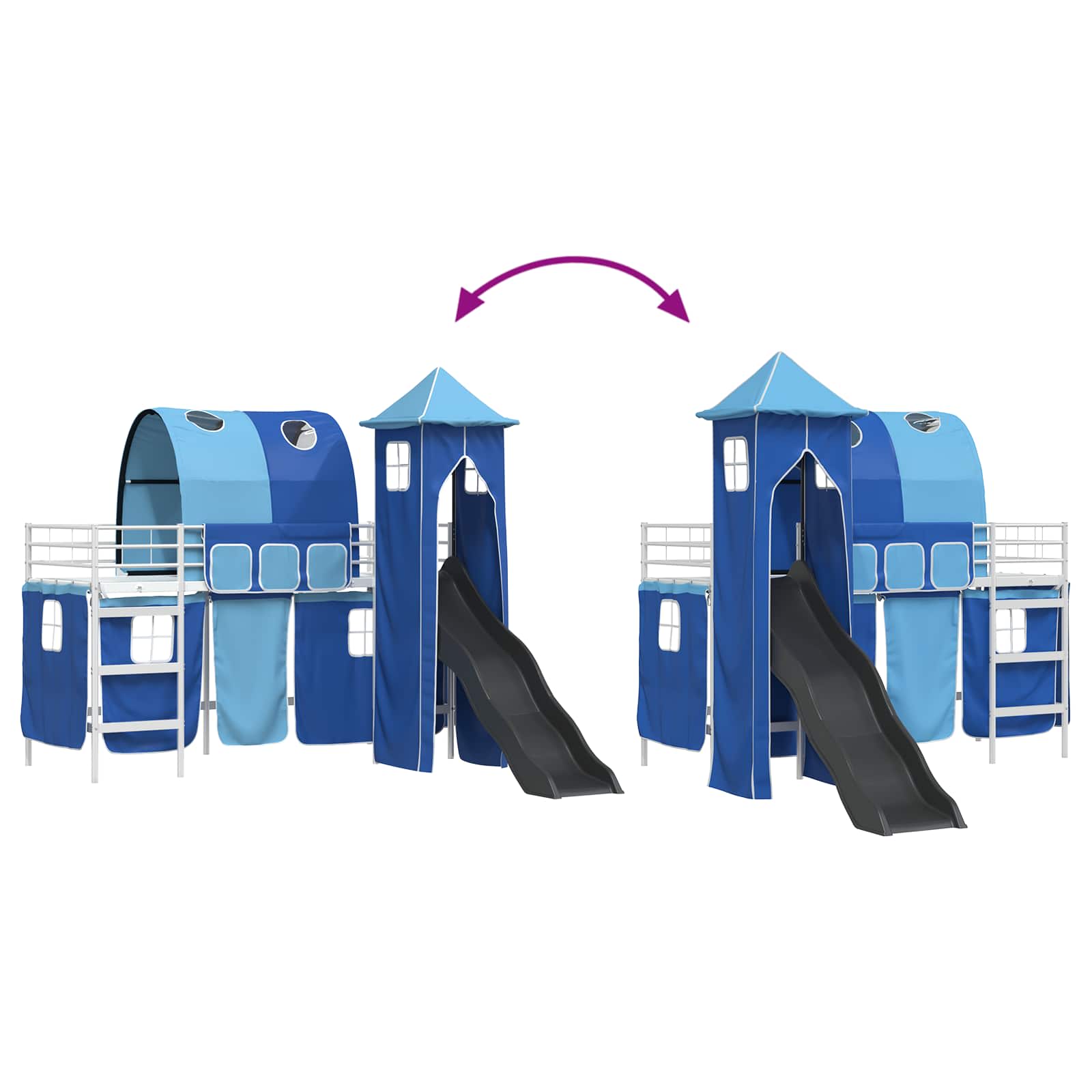 Dieser moderne Hochbett-Rahmen mit Vorhängen, Turm und Rutsche ist die perfekte Lösung für coole Kinderzimmer. Das frische Design sorgt dafür, dass es überall gut aussieht. Mit dem tollen Turm und der aufregenden Rutsche wird die Schlafenszeit zum Erlebnis. Das durchdachte Design macht es möglich, den Platz optimal zu nutzen und passt super zum aktiven Lebensstil von Kindern, denn es fördert Fantasie und Kreativität. So wird das Möbelstück zum echten Highlight im Kinderzimmer. Robuster Metallrahmen: Dieser Metallrahmen ist extrem stabil und hält den Abenteuern aktiver Kinder stand. Die matte Oberfläche sieht super aus und passt zu jedem Kinderzimmer-Stil. Sicherheit und Stabilität sind auch wichtig – das Bett ist darauf ausgelegt, den täglichen Gebrauch zu überstehen. Spannende Rutsche und Turm: Mit der integrierten Rutsche und dem Turm wird das Schlafzimmer zum Spielplatz. Die Elemente fördern kreatives Spielen und machen es zu mehr als nur einem Bett – hier wird Lernen mit Spaß kombiniert. Funktionale Vorhänge: Das Bett hat Vorhänge, die einfach zu handhaben sind und für einen ordentlichen Look sorgen. Die coolen blauen und schwarzen Farben der Vorhänge bringen ein bisschen Geheimnis und bieten gleichzeitig die Privatsphäre, wenn nötig. Der Bogen versteckt die Montage und sieht dazu noch gut aus. Matte Oberfläche: Die matte Lackierung hält Fingerabdrücke und Staub fern und sieht einfach schick aus. Das Design ist zeitlos und passt wunderbar in moderne Räume, während die Pflege minimal bleibt. Einfach zu reinigen: Für die Pflege reicht ein feuchtes Tuch, ohne aggressive Chemikalien. Befolge die Montageanweisung des Herstellers, um die Möglichkeiten des Bettes optimal zu nutzen und seine Lebensdauer zu verlängern. So ist es eine langlebige Wahl für Familien.