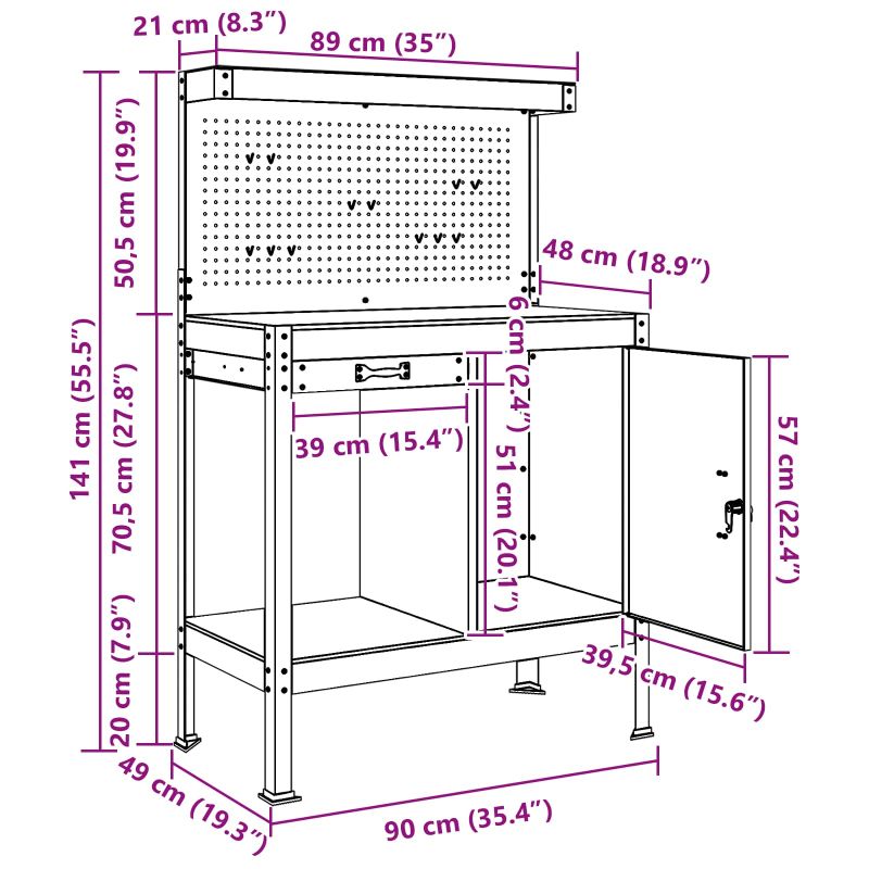 Diese coolen Werkbänke bringen einen industriellen Look in deine Garage oder Werkstatt. Aus Holzwerkstoffen und Metall gemacht, bieten sie eine robuste Fläche für alles – von DIY-Projekten bis hin zu professionellen Aufgaben. Sie verbinden Nützlichkeit und Stil und sind ideal für alle, die einen aufgeräumten Arbeitsplatz lieben. Materialien: Die Werkbank besteht aus hochwertigem Holzwerkstoff und bietet eine tolle, stabile Oberfläche für alle deine Projekte. Die starken Metallelemente sorgen dafür, dass sie auch bei häufigem Gebrauch immer gut aussieht. Enthaltene Komponenten: Sie hat viele Regale und Fächer aus Holzwerkstoff. Mit diesen hast du immer alles griffbereit, was dir bei deinen Aufgaben hilft. Merkmale: Die große Arbeitsfläche gibt dir genug Platz, um alles effizient zu organisieren. Ob Basteln oder schwere Projekte, sie unterstützt dich bestens. Empfohlene Anwendungen: Perfekt für Garagen und Werkstätten. Sie ist die ideale Lösung, um deine Werkzeuge zu organisieren und passt zu Profis und DIY-Fans. Ein funktionaler Arbeitsplatz mit coolem Design! Pflege Wartung: Du kannst die Pflege leicht halten, indem du die Holzoberflächen einfach mit einem feuchten Tuch abwischst. Vermeide scharfe Chemikalien, damit die Werkbank immer gut aussieht und lange hält.