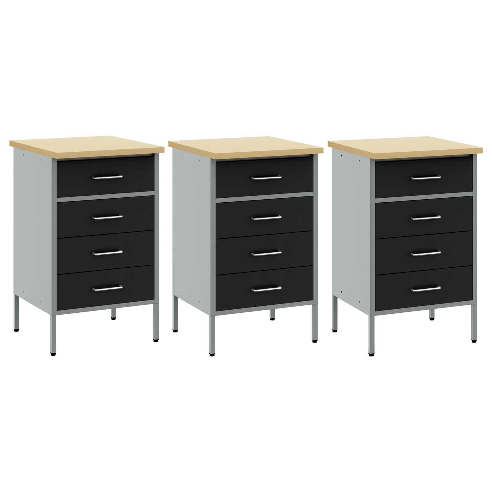 Dieser Industrie-Werkstattschrank mit 4 Schubladen hat alles, was du brauchst, um deinen Arbeitsplatz stylish und funktional zu gestalten. Perfekt fr jede Werkstatt oder Garage, bietet er viel Platz fr deine Werkzeuge und sieht dazu noch schick aus. Aus robustem Stahl und Holzwerkstoff gebaut, ist er langlebig. Die hhenverstellbaren Fe sorgen dafr, dass er auf jedem Untergrund stabil steht. Egal, ob du gerade anfngst oder ein Profi bist, dieser Schrank hlt dein Equipment organisiert und griffbereit. Und die Schubladen mit Kugellager? Die gleiten wie ein Traum und machen sicher, dass deine Werkzeuge nicht verloren gehen. Wenn du nach einer coolen Lsung fr die Aufbewahrung suchst, die auch gut aussieht, ist dieser Schrank eine top Wahl fr jede Garage oder Werkstatt.