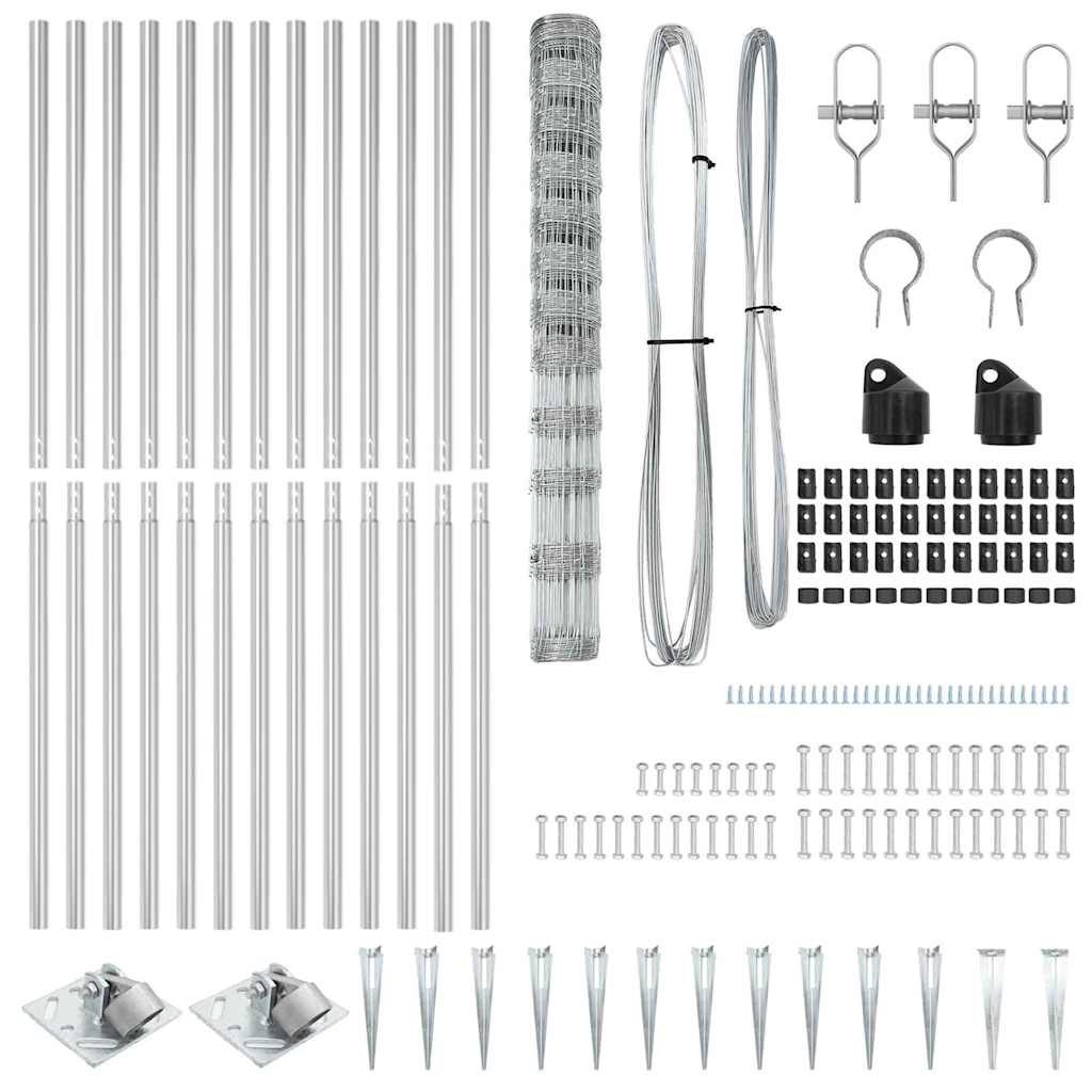 Der Feldzaun 1,4x50 m kombiniert starken verzinkten Stahl mit einfacher Handhabung und ist eine tolle Barriere für viele Outdoor-Zwecke. Seine schicke graue Oberfläche und der stabile Aufbau erhöhen nicht nur die Sicherheit, sondern verleihen deinem Garten oder Hof auch einen stilvollen Look. Robuste Bauweise: Der verzinkte Stahl sorgt für eine langlebige Barrier e, die wetterfest ist und dir Sicherheit gibt, egal wie die Umstände auch sein mögen. Einfache Montage: Kommt mit allem, was du für einen zügigen Aufbau brauchst, wie 3 Paneelen und einer Spike-Ankerfixierung, sodass du direkt loslegen kannst. Vielseitig einsetzbar: Perfekt für alle deine Außen-Zaunbedürfnisse, lässt er sich mühelos für verschiedene Anwendungen einsetzen. Solides Design: Entwickelt, um den Elementen standzuhalten und für Stabilität zu sorgen. Trendiger Look: Seine glatte und elegante Textur gibt deinem Außenbereich einen modernen Akzent, während er gleichzeitig gut funktioniert.