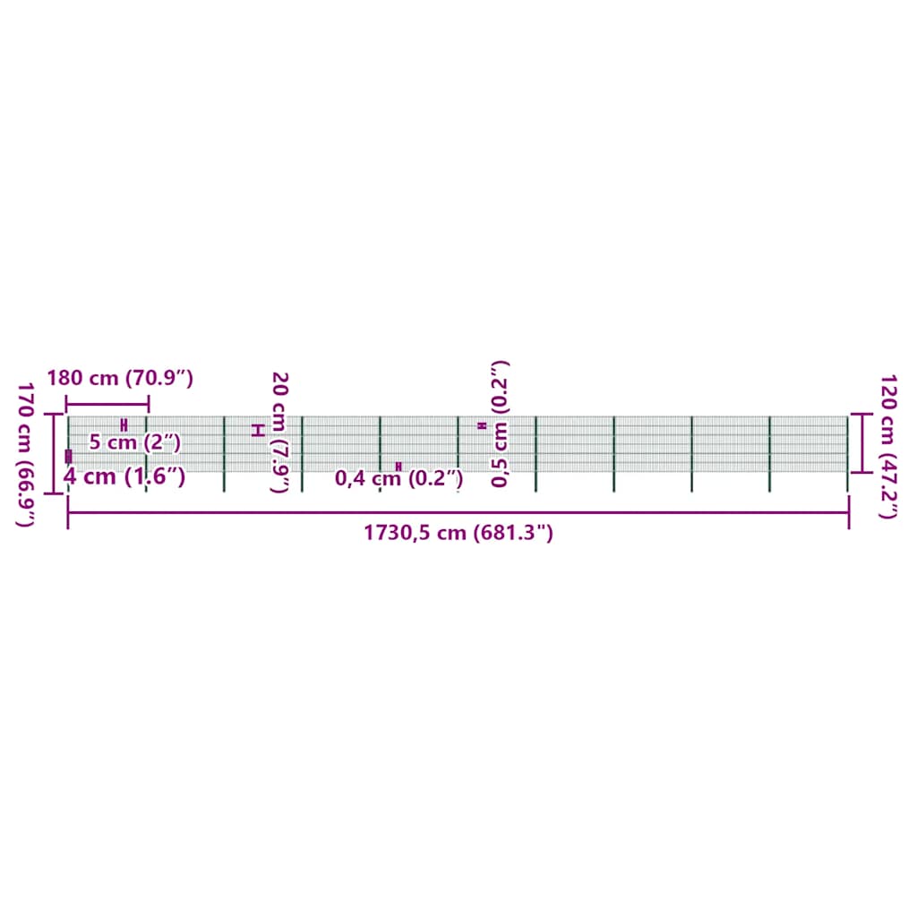Mit seinem einfachen und dennoch praktischen Design passt dieses Set von Gartenzaunpaneelen mit Zaunpfosten perfekt zu jedem Garten. Hergestellt aus wetterfestem und korrosionsbeständigem, pulverbeschichtetem Eisen, ist dieses Zaunset äußerst robust und langlebig. Es lässt sich einfach aufstellen und bildet eine hervorragende Barriere, um unerwünschte Besucher von Ihrem Garten oder Ihrer Terrasse fernzuhalten. Die Lieferung enthält 8 x Doppelstabmatten-Zaunfelder und 3 Zaunpfosten.