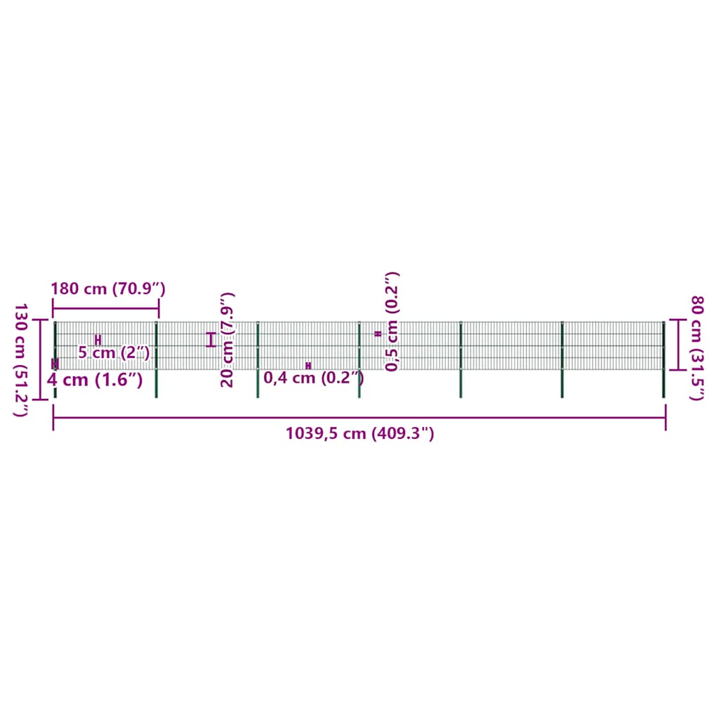 Zaunfeld mit Pfosten Eisen 10,2 x 0,8 m Grün