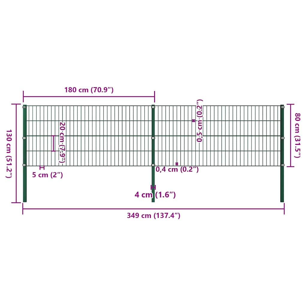 - Lieferung enthält 4 x Doppelstabmatten-Zaunfelder und 3 Zaunpfosten