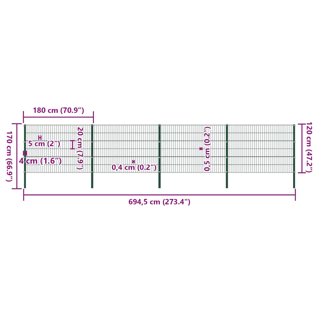 Zaunfeld mit Pfosten Eisen 6,8 x 1,2 m Grün