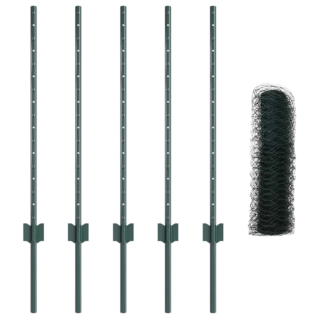 Das grüne pulverbeschichtete Sechseck-Gartenzaun-Set ist eine top Wahl, um deine Außenbereiche aufzupeppen. Sein robustes sechseckiges Design sieht super aus und schützt deine Pflanzen, und es ist extra gut für Abgrenzungen. Die glatte Oberfläche gibt einen modernen Touch und sorgt dafür, dass Tiere und Kinder sicher sind, was deinem Garten einen stylischen Kick verleiht. Robuste Konstruktion: Mit einem stabilen Metallrahmen und Pulverbeschichtung, stark genug, um alle Wetterbedingungen zu überstehen. UV-Sicher: So hergestellt, dass es nicht ausbleicht und die grüne Farbe frisch und intensiv bleibt. Vielseitige Anwendung: Ideal für den Zaunbau in Gärten oder zur Absteckung; passt sich leicht verschiedenen Outdoor-Anforderungen an. Einfache Montage: Kommt mit klaren Anweisungen und allen Werkzeugen, die du für eine einfache Montage brauchst. Komplettset: Jede Packung enthält eine Rolle Sechsecknetz und fünf robuste Pfosten für eine vollständige Zaunlösung.