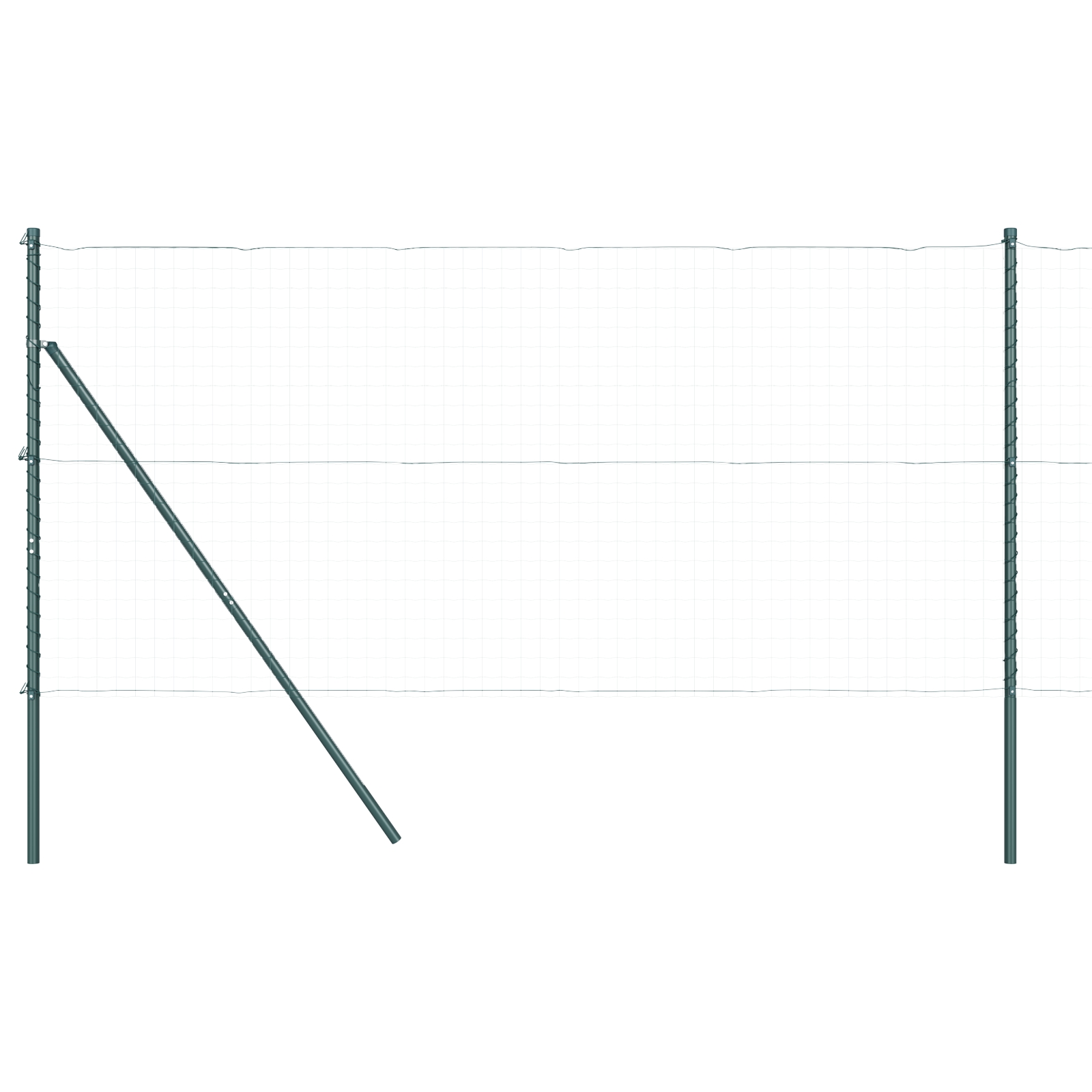 - Lieferumfang: 5 x Pfosten, 2 x Winkelelement, 5 x Plastikdeckel, 15 x Plastik-Spannseil-Unterstützer, 2 x Winkelelementdeckel, 2 x Winkelelementbeschläge, 3 x Spannzange, 1 x 25 m Bindedraht, 1 x 33 m Spannseil