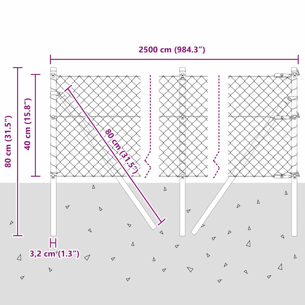 - Lieferumfang: 1 x Kettengliedzaun, 5 x Pfosten, 2 x Winkelpfosten, 5 x Kunststoffkappe, 15 x Kunststoffspannungsdrahtstütze, 2 x Winkelpfostenkappe, 2 x Winkelpfostenhardware, 3 x Spannungsregler, 1 x 25 m Bindedraht, 1 x 33 m Spannungsdraht