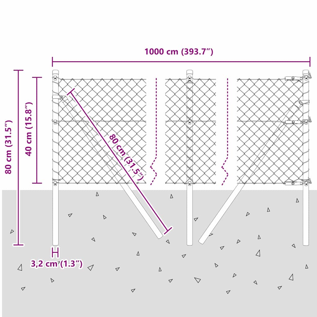 - Lieferumfang: 1 x Kettengliedzaun, 5 x Pfosten, 2 x Winkelpfosten, 5 x Kunststoffkappe, 15 x Kunststoffspannungsdrahtstütze, 2 x Winkelpfostenkappe, 2 x Winkelpfostenhardware, 3 x Spannungsregler, 1 x 25 m Bindedraht, 1 x 33 m Spannungsdraht