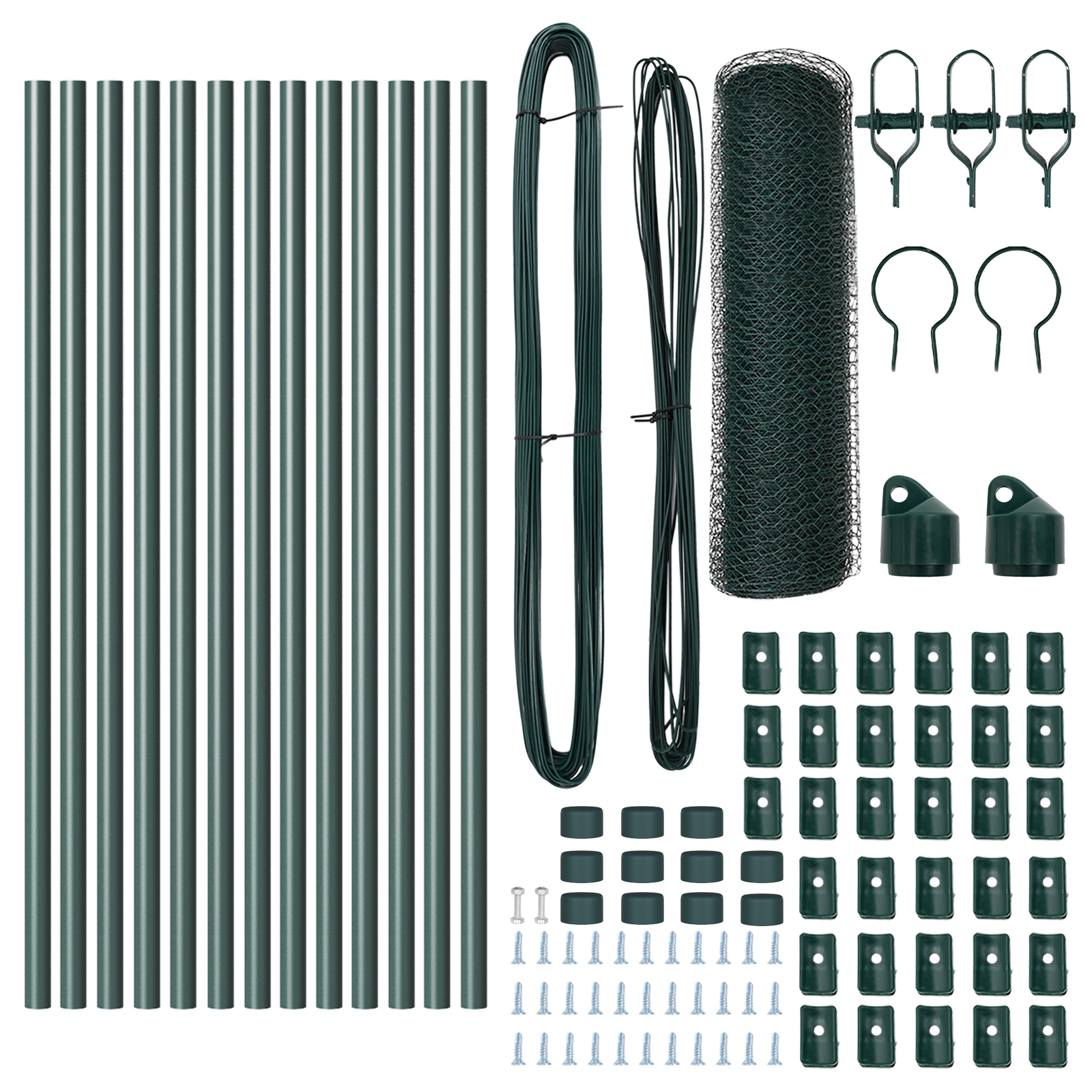 Dieses Outdoor-Zaunset bietet dir eine solide Möglichkeit, deinen Garten und andere Außenbereiche einzuzäunen. Mit seiner hübschen waldgrünen Farbe und stabilen Bauweise ergänzt es jeden Hof und sorgt dafür, dass es langlebig und sicher ist – perfekt für all deine Outdoor-Bedürfnisse. Robustes Material: Hergestellt aus pulverbeschichtetem Stahl, ist dieses Zaunset langlebig und widerstandsfähig gegen Witterungseinflüsse, sodass du lange Freude daran hast, während es deine Außenbereiche schützt. Die glatte, witterungsbeständige Oberfläche erhöht zusätzlich die Lebensdauer. Toll für Gärten: Die schicke waldgrüne Farbe passt super in die Natur und bietet gleichzeitig eine starke Barriere für Haustiere und Kinder, damit dein Garten toll aussieht. Einfache Montage: Das Set kann schnell von nur zwei Personen mit einfachen Werkzeugen wie Hammer und Gummihammer aufgebaut werden, damit du deinen Zaun rasch aufstellen und die Zeit im Freien genießen kannst. Verschiedene Größen: Mit mehreren Größen erhältlich, passt das Zaunset in verschiedene Außenbereiche und erfüllt die Anforderungen für unterschiedlich große Gärten und Stile. Komplettset: Dieses Zaunset beinhaltet alles, was du brauchst, wie Zaunpfosten, eine Maschenrolle und alle notwendigen Befestigungen, sodass du für eine reibungslose Installation gewappnet bist.