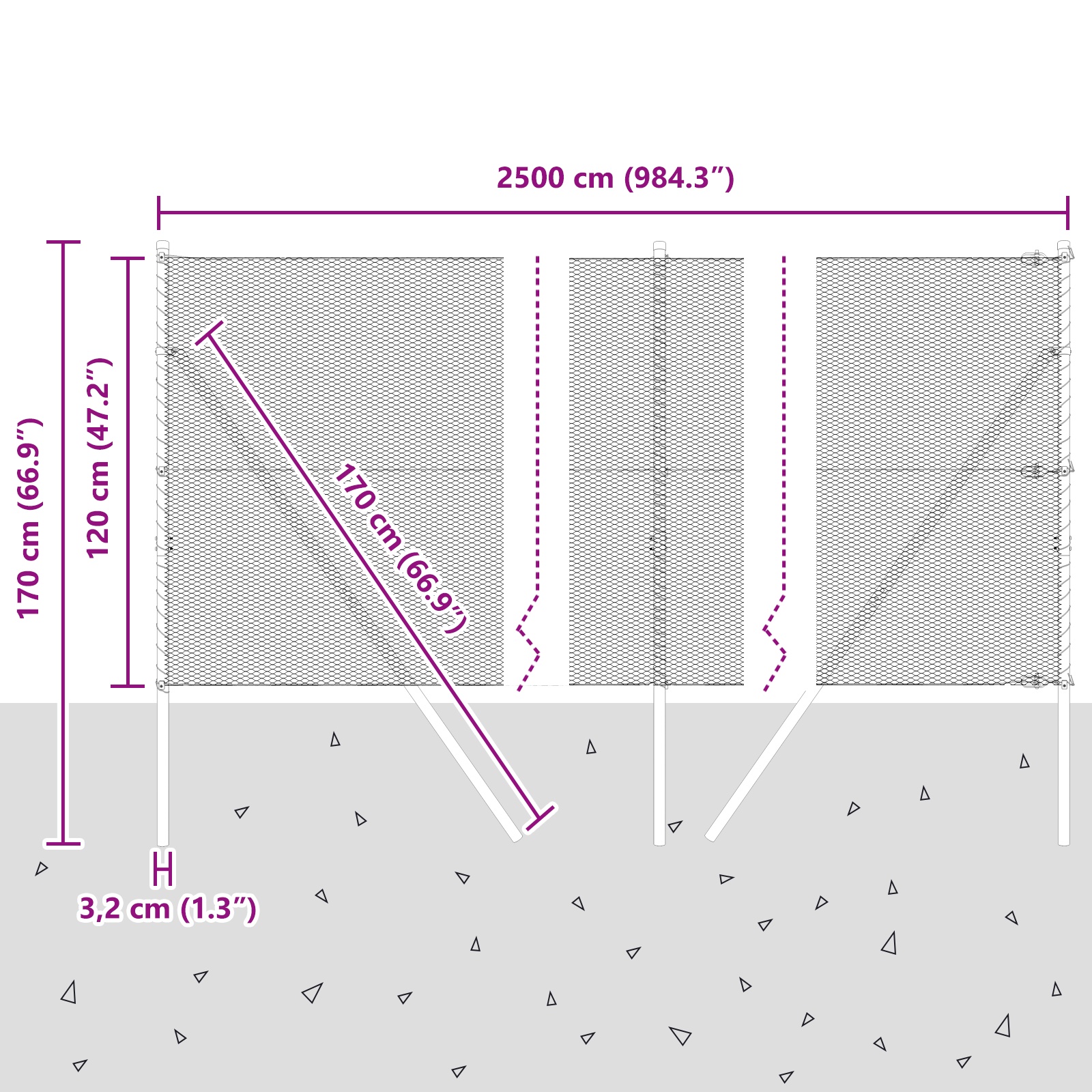 - Lieferumfang: 11 Zaunpfosten, Rolle Zaun, Bindemittel