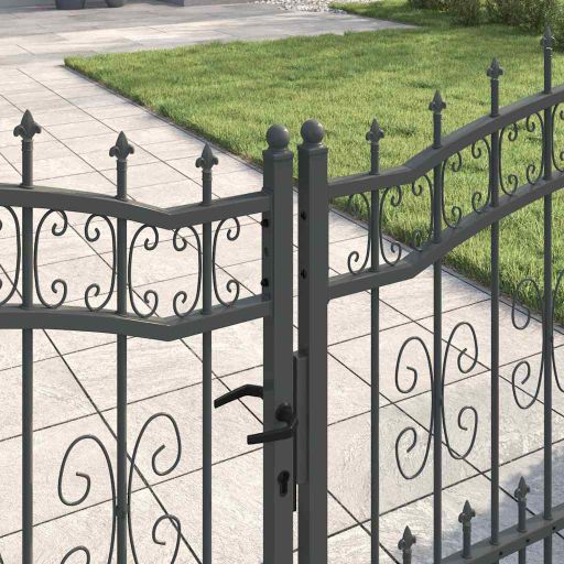 Dieses traditionelle Zauntor mit elegantem Speartop-Design bietet eine Mischung aus Stil und Sicherheit für deinen Garten oder deine Terrasse. Es schafft einen klaren, offenen Raum und die klassischen Details werten jede Außenumgebung auf, während sie gleichzeitig robust sind. Mit seinem ikonischen Spear-Design bringt es Tiefe und Charakter und wird zum Blickfang für moderne ebenso wie klassische Häuser. Qualitätsstahl-Komposition Hergestellt aus starkem Stahl, bietet dieses Tor außergewöhnliche Widerstandsfähigkeit gegen das Wetter. Es bleibt stabil und sieht gut aus, ganz gleich, wie die Umstände sind. Distinct Spear Design Das Speartop gibt jedem Umfeld einen Hauch von Klasse und erinnert an königliche Architektur. Es sieht nicht nur gut aus, sondern sorgt auch für mehr Sicherheit – das möchten Hausbesitzer! Sicher mit Schiebebolzen Ausgestattet mit einem zuverlässigen Schiebebolzen-Schloss, das maximale Sicherheit bietet. Dieser einfache und langlebige Mechanismus sorgt dafür, dass das Tor sicher bleibt und unerlaubten Zugang minimiert, und bietet dir ein beruhigendes Gefühl. Traditioneller Touch Sein klassischer Stil mit feiner Handwerkskunst passt perfekt in traditionelle Gartenlandschaften. Es bringt einen Hauch von altmodischem Charme in deinen Außenbereich. Einfach pflegen und warten Halte seinen glatten Look ganz easy. Mit einfachem Abwischen und der Vermeidung von scharfen Reinigern bleibt dieses Tor immer schön – wenig Aufwand, lange Freude!