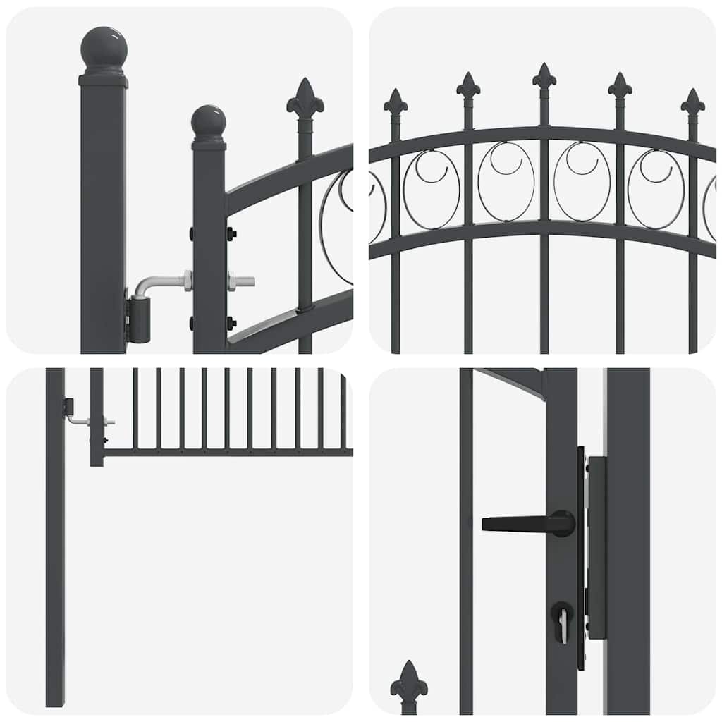 Dieses Zauntor mit Spitzen bringt moderne Einfachheit in die Außenbereiche. Es hat eine schlanke, pulverbeschichtete Stahlkonstruktion mit klaren Linien und wenig Schnickschnack. Ideal für Gärten und Terrassen, bietet es die perfekte Kombination aus Stil und Nutzen. Das bogenförmige Design sorgt für einen eleganten Akzent, sodass es nicht nur funktional, sondern auch hübsch anzusehen ist. Die robuste Bauweise gewährleistet zuverlässige Leistung bei jedem Wetter und bildet eine sichere Grenze. Pulverbeschichteter Stahl: Das Tor besteht aus hochwertigem pulverbeschichtetem Stahl. Die Beschichtung sorgt für Langlebigkeit und macht es wetterfest. Außerdem bleibt es optisch ansprechend. So wird weniger Wartung nötig, was genial für alle ist, die beide Vorteile wollen: Schönheit und Praktikabilität. Inklusive Komponenten: Mit zwei Pfosten und stabilen Scharnieren ist das Tor einfach zu montieren. Du bekommst auch drei passende Schlüssel. Alles wurde sorgfältig ausgesucht, um einen stabilen und sicheren Betrieb zu gewährleisten. Das ist beruhigend für tägliche Nutzer. Stilvolles bogenförmiges Design: Das elegante, bogenförmige Oberteil und die dekorativen Spitzen passen zu vielen Gartenarten. Es verbindet klassische Eleganz mit einem modernen Touch und steigert den ästhetischen Wert jedes Außenbereichs. Es fügt sich wunderbar in die natürliche Schönheit von Gartenanlagen ein und macht aus einer einfachen Barriere ein stilvolles Highlight. Outdoor-Vielseitigkeit: Perfekt für Gärten und Terrassen bietet das Tor Privatsphäre sowie raumteilende Lösungen. Das moderne Design fügt sich mühelos in zeitgenössische Gärten ein und ist eine vielseitige Ergänzung für verschiedene Landschaften. Es schafft einen einladenden Eingang und wahrt dabei die notwendige Privatsphäre. Montage und Wartung: Die Montage ist einfach und erfordert nur zwei Personen und einen Schraubendreher. Nach der Installation bleibt das Tor stabil und sicher. Regelmäßige Checks der Scharniere und Schrauben sind empfehlenswert, um die Haltbarkeit zu sichern. Um es hübsch zu halten, wische die Oberfläche einfach mit einem milden Reinigungsmittel und Wasser ab.