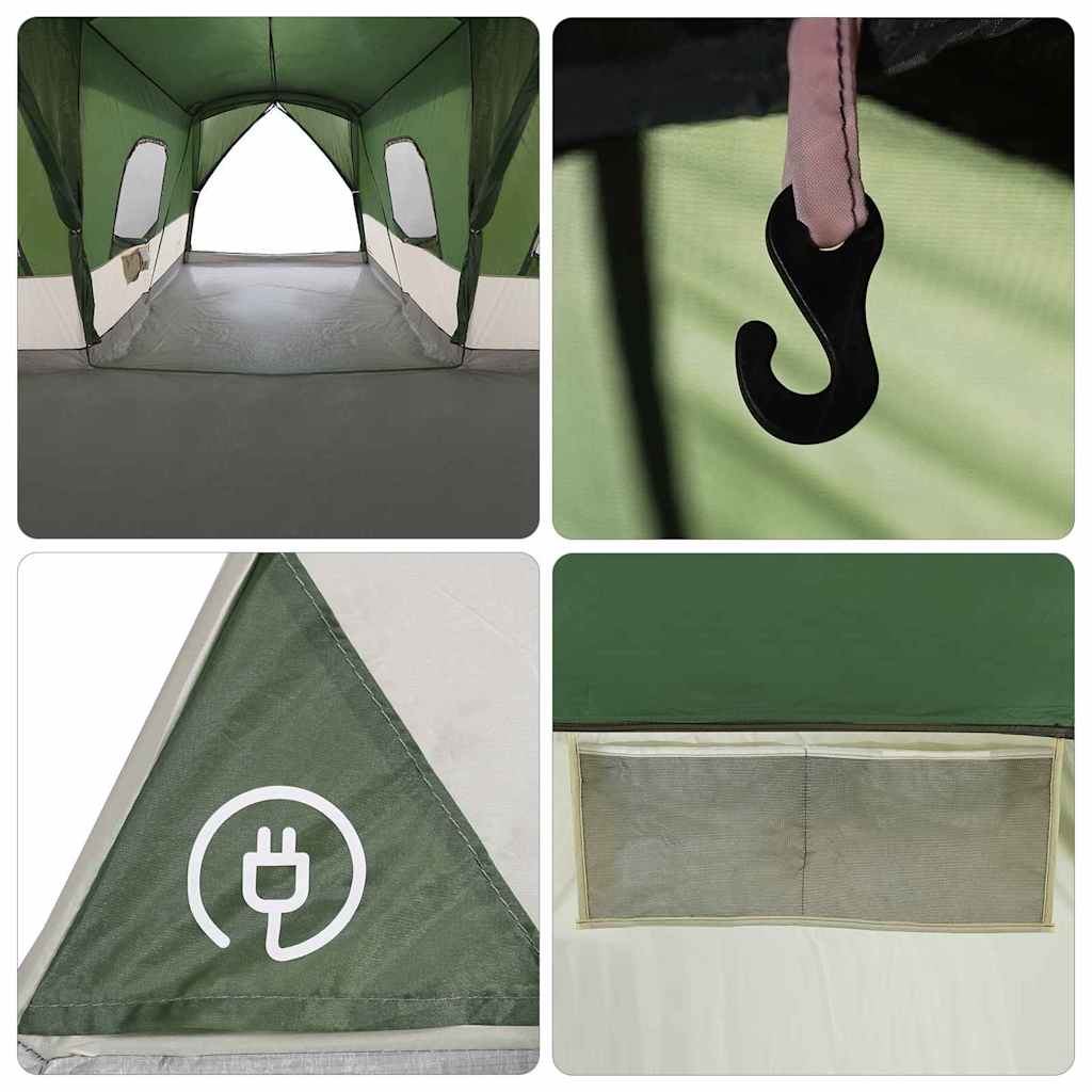 Dieses geräumige Familienszelt setzt neue Maßstäbe für Outdoor-Abenteuer mit seinem stabilen Taftaufbau aus 185T-Polyester und PU-Beschichtung für fortschrittliche Wetterbeständigkeit. Es richtet sich an alle, die modernes Design schätzen, was sich durch einfache Formen und praktische Funktionalität auszeichnet. Das Zelt fügt sich harmonisch in die natürliche Umgebung ein und bietet einen Rückzugsort voller Komfort. Robuste Materialien: Hergestellt aus hochwertigem 185T-Polyester mit PU-Beschichtung, bietet dieses Zelt hervorragende Wasserfestigkeit und sorgt gleichzeitig für Haltbarkeit und Komfort für Camper. Der Taft sorgt für einen stylischen und praktischen Schutz gegen unvorhersehbares Wetter und bietet deiner Familie einen gemütlichen Rückzugsort. Praktisches Design: Kombiniert modernes Design mit Funktionalität und bietet viel Platz für die ganze Familie. Klare Linien und wenig Schnickschnack verleihen ihm einen besonderen Charakter und sorgen gleichzeitig für die nötige Stabilität. Sein zeitgenössisches Design erlaubt es den Nutzern, sowohl sein gutes Aussehen als auch seine nützlichen Funktionen zu genießen. Intelligente Belüftung: Belüftungsfenster sorgen für frische Luft, während die versiegelten Nähte unerwünschte Zugluft verhindern. Dies trägt zum Komfort bei und verbessert die Wetterbeständigkeit, was es ideal für längere Familienausflüge macht. Integrierte Bequemlichkeit: Der integrierte Stromanschluss hält dich jederzeit mit Strom versorgt, während innere Aufbewahrungstaschen wichtige Dinge griffbereit halten. Halterungen für Beleuchtung und eine abnehmbare Regenhaube sorgen dafür, dass alles einfach und vielseitig bleibt. Mühelose Einrichtung und Mobilität: Features wie schnelles Abbauen für den einfachen Transport, eine Tragetasche und Erdanker sorgen für eine benutzerfreundliche Handhabung. Abspannleinen bieten zusätzliche Stabilität und machen das Aufstellen zum Kinderspiel, wobei der Benutzerkomfort immer im Vordergrund steht.