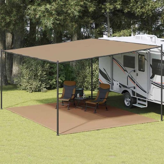 Machen Sie Ihren Campingausflug mit diesem Zeltteppich noch komfortabler. Legen Sie ihn in Ihr Zelt, unter die Markise Ihres Wohnwagens oder auf Ihre Terrasse. Der Zeltteppich besteht aus hochdichtem Polyethylen, das eine gute Wasserdurchlässigkeit und Atmungsaktivität aufweist. Der Zeltteppich ist mit integrierten Ösen an den vier Ecken und 2 zusätzlichen Ösen in der Mitte der Längsseite ausgestattet, die eine bequeme Befestigung ermöglichen. Der Outdoor-Teppich lässt sich leicht mit Wasser reinigen. Bei Bedarf kann der Zeltteppich einfach auf die gewünschte Größe zugeschnitten werden. Gut zu wissen: Für die ordnungsgemäße Verwendung dieses Produkts sind kompatible Haken (nicht im Lieferumfang enthalten) erforderlich. Um die richtige Passform zu gewährleisten, berücksichtigen Sie beim Kauf bitte die Gesamtlänge der Haken und des Produkts.