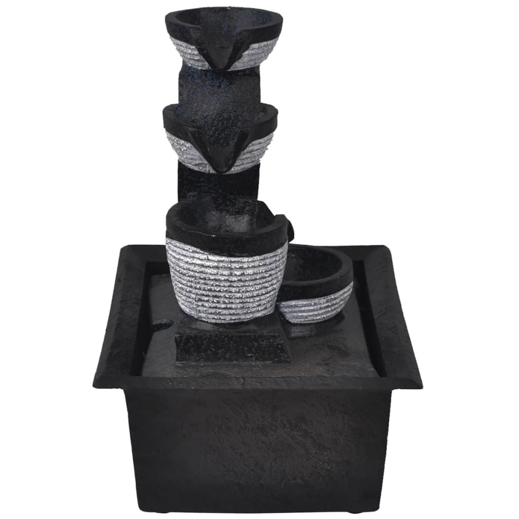 Dieses LED-Wasserspiel ist eine ausgezeichnete Wahl, um Ihrem Wohnraum eine natürliche, beruhigende Atmosphäre zu verleihen. Dieses Wasserspiel ergänzt jede Inneneinrichtung wunderbar. Der Zimmerbrunnen hat einen vierstufigen Wasserfall und ist mit LED-Beleuchtung ausgestattet, was besonders nachts für einen atemberaubenden visuellen Effekt sorgt. Es besteht aus Kunstharz und ist UV-beständig. Das bedeutet, dass es bei direkter Sonneneinstrahlung wunderschön aussieht und seine Farbe lange behält. Mehrere Wasserströme und das beruhigende Rauschen des tropfenden Wassers schaffen eine entspannende und meditative Atmosphäre. Der im Lieferumfang enthalten hochwertige Pumpe sorgt für einen sicheren und zuverlässigen Vorgang. Dieses in sich geschlossene Wasserspiel kann überall in Ihrem Haus aufgestellt werden.
